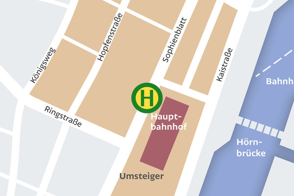 60S > Fachhochschule, Schwentinestraße > Botanischer Garten (ü. Universität)