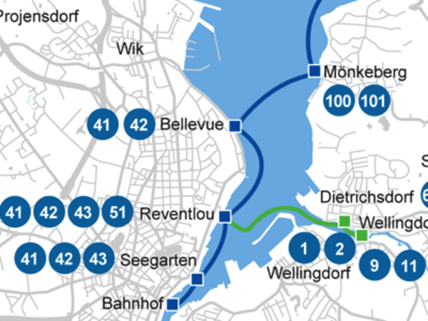 901 > Wellsee, Edisonstraße (-Rönne) > Hauptbahnhof (-Altenholz -Strande)